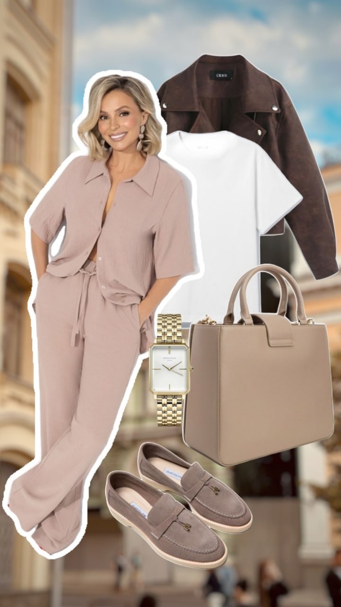 Образ #2😉 Новинки: Брюки на резинке Оглушительный успех (капучино) - 1790Р Рубашка из фактурной ткани Шёлковая уверенность (капучино) -1890Р Создаем многослойный образ одев любимую белую футболку под рубашку, добавляем коричневую куртку или тренч, часы в золотлм оттенке и «ву-а-ля» шикарный образ готов❤️ СМОТРЕТЬ ОБРАЗ НА САЙТЕ