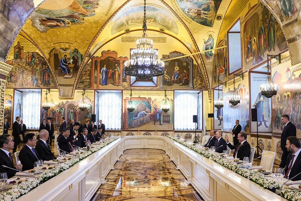 Торжественный обед в преддверии Дня Победы, вечером 8 мая, посетили руководители около трех десятков стран и другие почетные гости Иностранных лидеров и членов делегаций на торжественном обеде в преддверии 80-летия Победы угощали блюдами традиционной русской и зарубежной кухонь. Меню опубликовал Telegram-канал «Пул Первого». В списке салат с крабом и клубникой и пельмени с осетриной и щучьей икрой, борщ с телятиной, уха по-карельски. В качестве основных блюд подавали филе палтуса с мини-овощами, медальоны из оленя с лесными грибами и карамелизированную утку со спаржей. Яблочный пирог с ванильным мороженым и щербет из морошки предлагались на десерт. Из напитков — крымское или краснодарское вино. Напомним, что в Москву прибыли 29 глав делегаций иностранных государств. Фото телеграм-канал Пул Первого Фото REUTERS