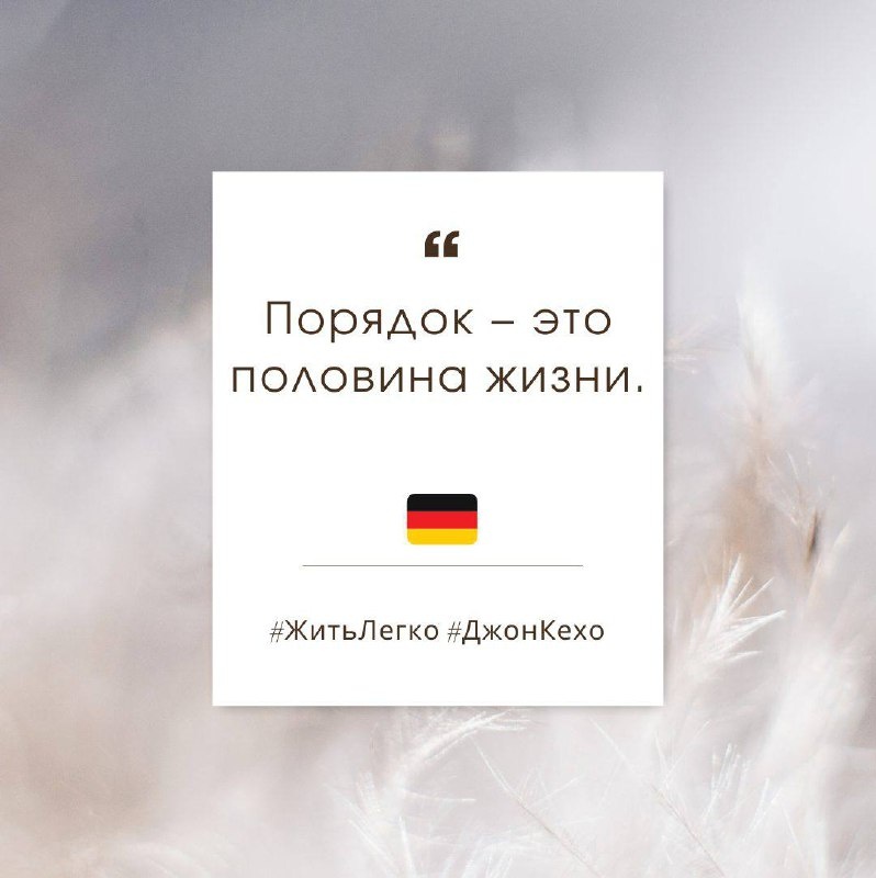 Участников недели #ЖитьЛегко на канале Джона Кехо ждёт кое-что неординарное 🤩 Скорее заглядывайте в пост! 👇 Мы исследовали всю мудрость человечества про порядок в жизни, лёгкость и гармонию — в доме и в душе. Сегодня вас ждёт подборка пословиц и поговорок из самых разных уголков мира 💛 Драгоценные фразы, которые передаются из поколения в поколение… Они наполнены теплом и уютом ✨Впитывайте народную мудрость целого мира с нашей подборкой! ‼️Непременно делитесь карточками в соцсетях и мессенджерах, ведь сеять «разумное, доброе, вечное» — это всегда отличная идея! 😉 🇷🇺 «В чистом доме и душа светлее» (Россия) 🇨🇳 «整洁的家,福气常在。» → Чистый дом приносит благословение. (Китай) 🇩🇪 «Ordnung ist das halbe Leben» → Порядок — это половина жизни. (Германия) 🇫🇷 «Un esprit clair dans une maison claire» → Ясный ум — в ясном доме. (Франция) 🇺🇸 «A place for everything, and everything in its place» → Всему своё место, и всё — на своём месте. (США) 🇯🇵 «部屋の乱れは心の乱れ» → Беспорядок в комнате