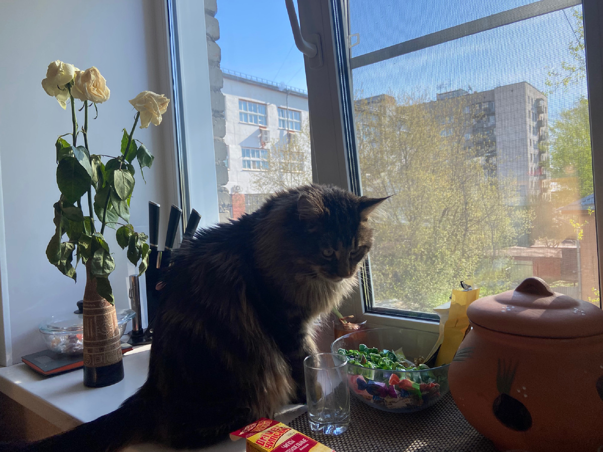 ПС: Гаврила обижается. По чуждым запахам понял что мы проводим время на даче. Каждый раз провожает с грустью в глазах. Но ничего, потерпит пару недель и на его улице будет праздник. Наконец-то сменит бетонную коробку на свободу с чистым воздухом, травкой, жучками и паучками)))