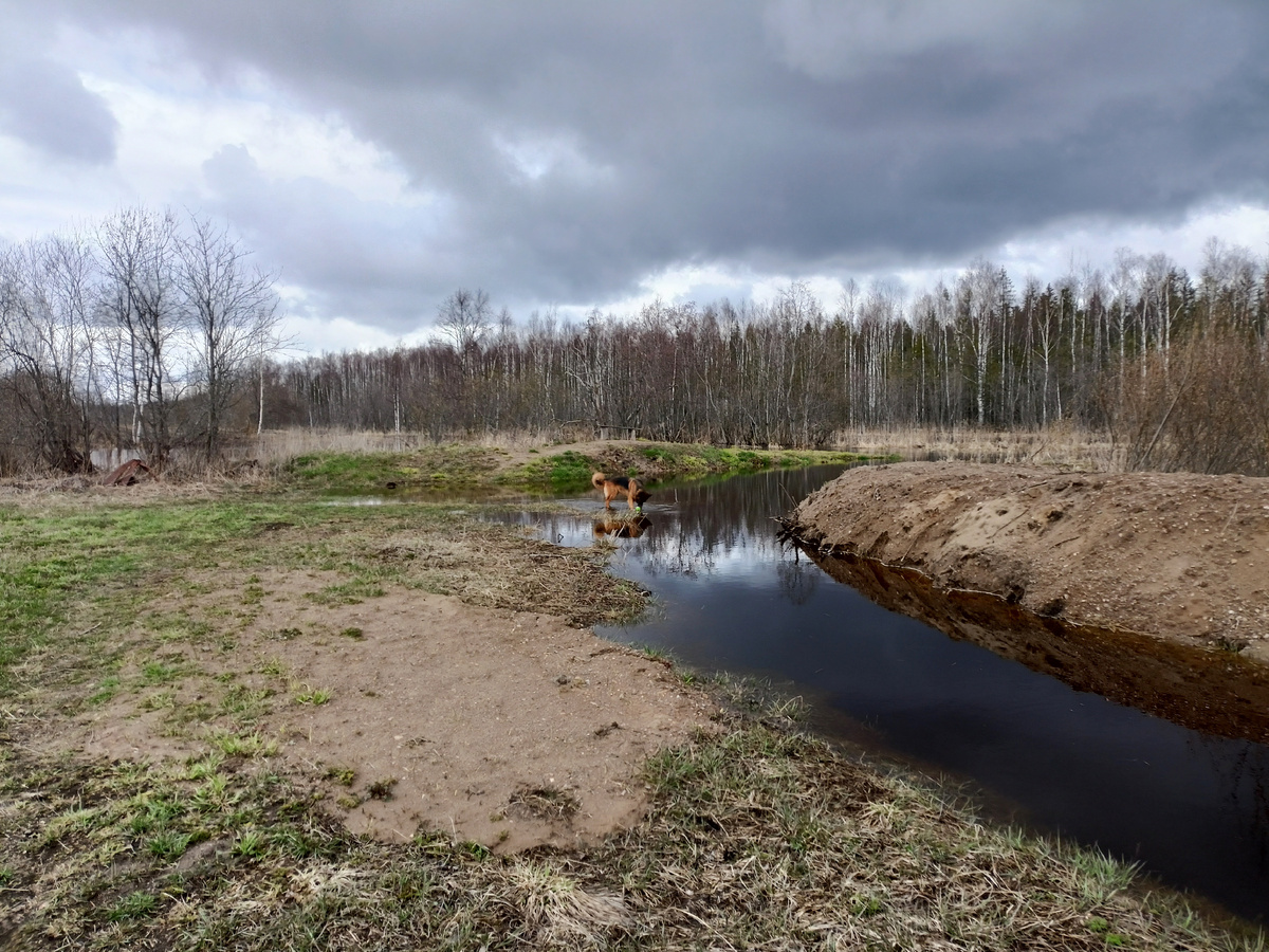 Собачонка рада половодью, вы ведь знаете её водолазью страсть... иной раз я завидую азарту, с которым она аппетитно вбегает в отмели пруда, уж так мне хочется самой проверить густоту красок небесного цвета - ах, какие тягучие тучи окунались вчера в Мотомку!