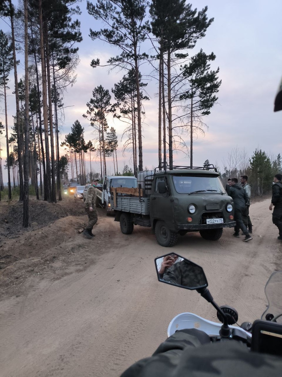 Корреспондент @chita.ru с места сообщает, что люди потушили огонь в «Благодатном» и теперь едут к новому очагу возгорания