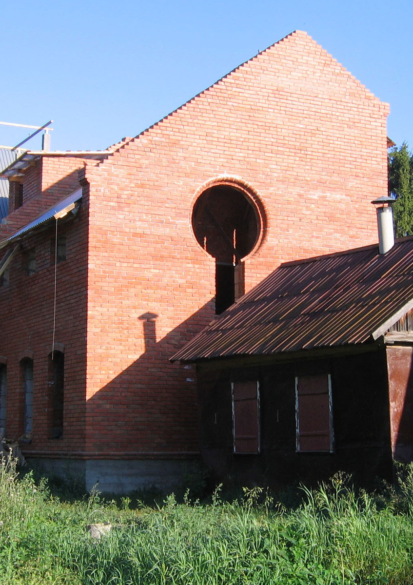 ( разработке) В 2018 я нашел бригаду из Узбекистана, которая за лето построила по моим чертежам и технологическим идеям, со мной как прорабом объекта, монолитное ж/б перекрытие над 1-м этажом и второй этаж пристройки с кровлей. На втором этаже восточной стены пристройки из силикатных блоков с наружной облицовкой из глиняного обожженного кирпича предполагалось устройство проема для балконной двери с круглым окном для французского балкончика. Бригада выполняла проем с применением фигурного кирпича.