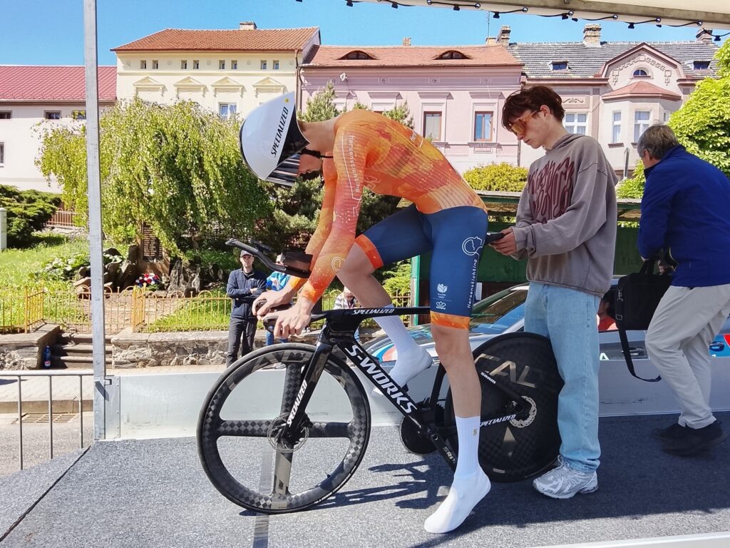 Второй гоночный день на «Гонке мира» (Course de la Paix Juniors) дал возможность юниорам проявить себя сразу в двух дисциплинах — в первой половине дня они проехали индивидуальную гонку с раздельным стартом на 8,8 километра, а во второй половине дня — групповую гонку на 58,1 километра. Борьба за разделку оказалась очень напряжённой и победителя этапа от его соперника отделила всего секунда: Конор Мёрфи из Ирландии проехал 8,8 гладких километра по улицам Тршебивлице за 10 минут и 27 секунд, а Михель Морис из Нидерландом — за 10 минут и 28 секунд. Вос Колеман из Бельгии проиграл 12 секунд, а поляк Ян Майкл Яцковяк — 14. По 15 секунд проиграли австриец Хаймо Фуггер и голландец Гис Шонвельде, выигравший накануне первый этап велогонки. Мёрфи после разделки возглавил генеральную классификацию, но это было лишь временное явление, ведь во второй половине дня пелотон поехал групповую гонку из Руднице в Терезин и 58,1 километровая дистанция завершилась групповым спринтом, победу в котором одержа