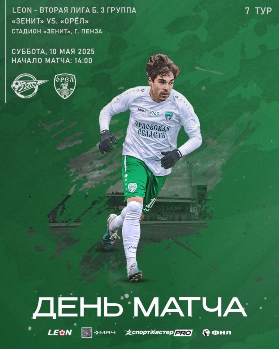 Сегодня на стадионе дан старт матчу 7-го тура Второй лиги (Дивизион Б) между “Зенит Пенза” и “Орел”. Стартовый состав ФК “Орел”: