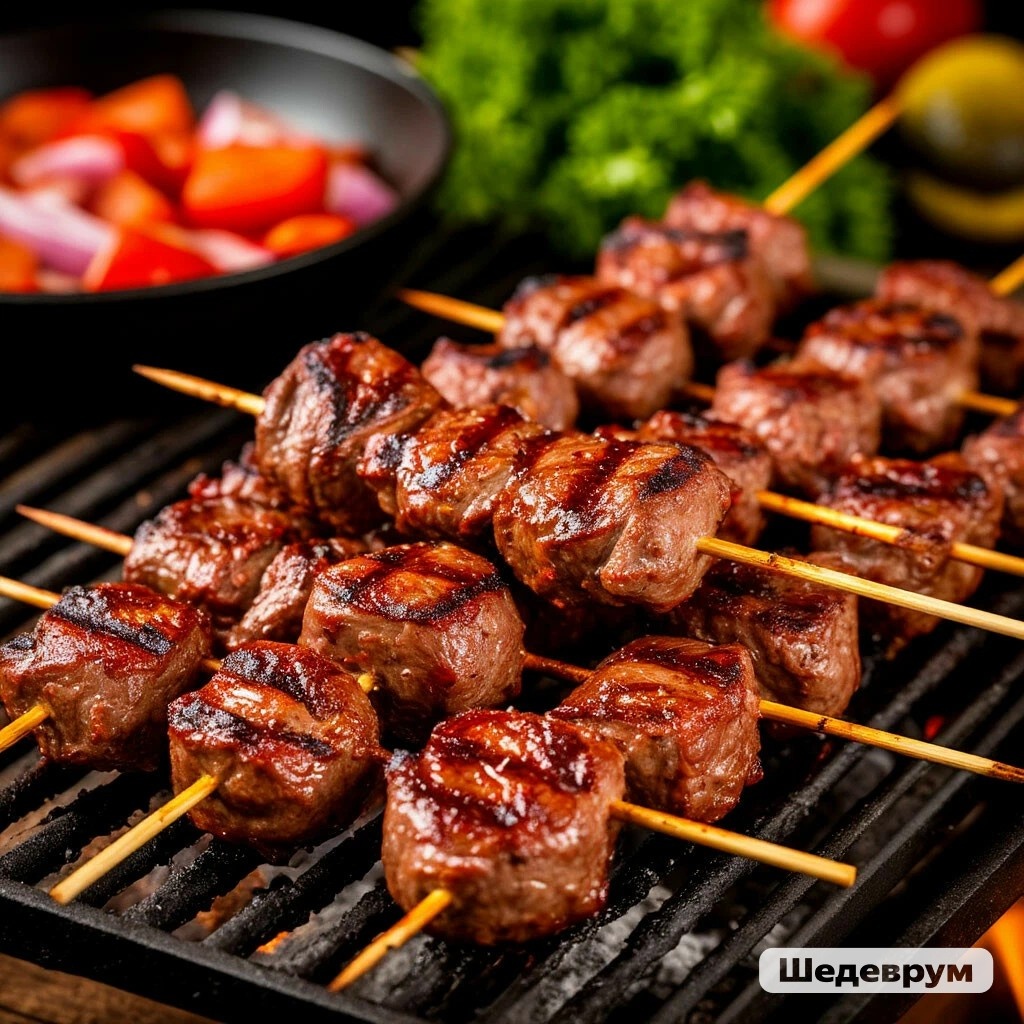 Простой и вкусный рецепт шашлыка из курицы: Ингредиенты: - Куриное филе — 1 кг - Лук — 2-3 шт. - Чеснок — 3-4 зубчика - Растительное масло — 100 мл - Уксус (яблочный или винный) — 2 ст. ложки - Специи: соль, черный перец, паприка, зира по вкусу - Лавровый лист — 2-3 шт. (по желанию) Приготовление: 1. Подготовка курицы: Нарежьте куриное филе на кусочки размером 3-4 см. 2. Маринад: В глубокой миске смешайте растительное масло, уксус, соль, черный перец, паприку и зиру. Добавьте мелко нарезанный лук и выдавленный чеснок. Перемешайте. 3. Маринование: Поместите куриные кусочки в маринад, тщательно перемешайте, чтобы каждый кусочек был покрыт смесью. Накройте пленкой и оставьте мариноваться на 1-3 часа в холодильнике. 4. Нанизывание на шампуры: После маринования, наденьте куриные кусочки на шампуры. Можно чередовать с овощами (перец, помидоры, лук). 5. Жарка: Разогрейте гриль или мангал до средней температуры. Жарьте шашлык, периодически переворачивая, примерно 15-20 минут, пока курица не