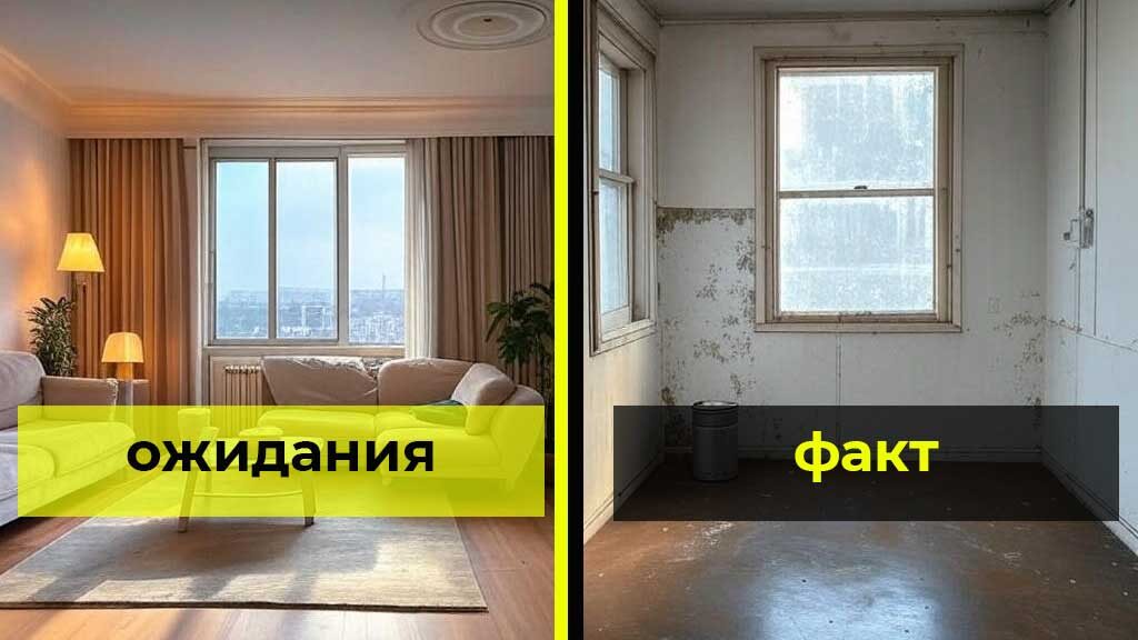 Но: реальность — маленькая комната, рядом высотка, до моря 30 минут по пробкам.