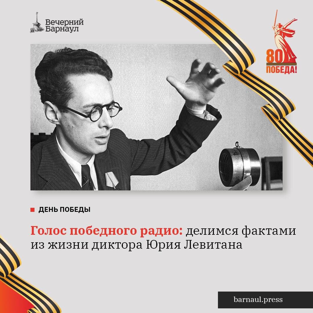 Юрий Левитан — человек, чей голос навсегда запомнился советским гражданам. Он и по сей день ассоциируется с важнейшими событиями в истории нашей страны — началом и окончанием Великой Отечественной войны, а также с первым полётом в космос. «Вечерний Барнаул» собрал самые интересные факты из жизни этого выдающегося диктора. @barnaul
