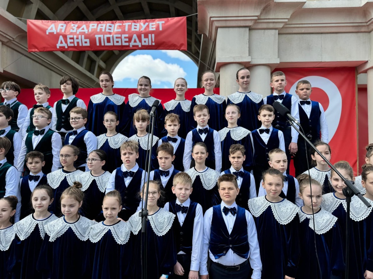 🎤 9 мая наш школьный хор «Мечта» стал частью грандиозного исторического события — Кинотеатральной реконструкции «Победа! Знамя над Рейхстагом» под руководством Игоря Угольникова!