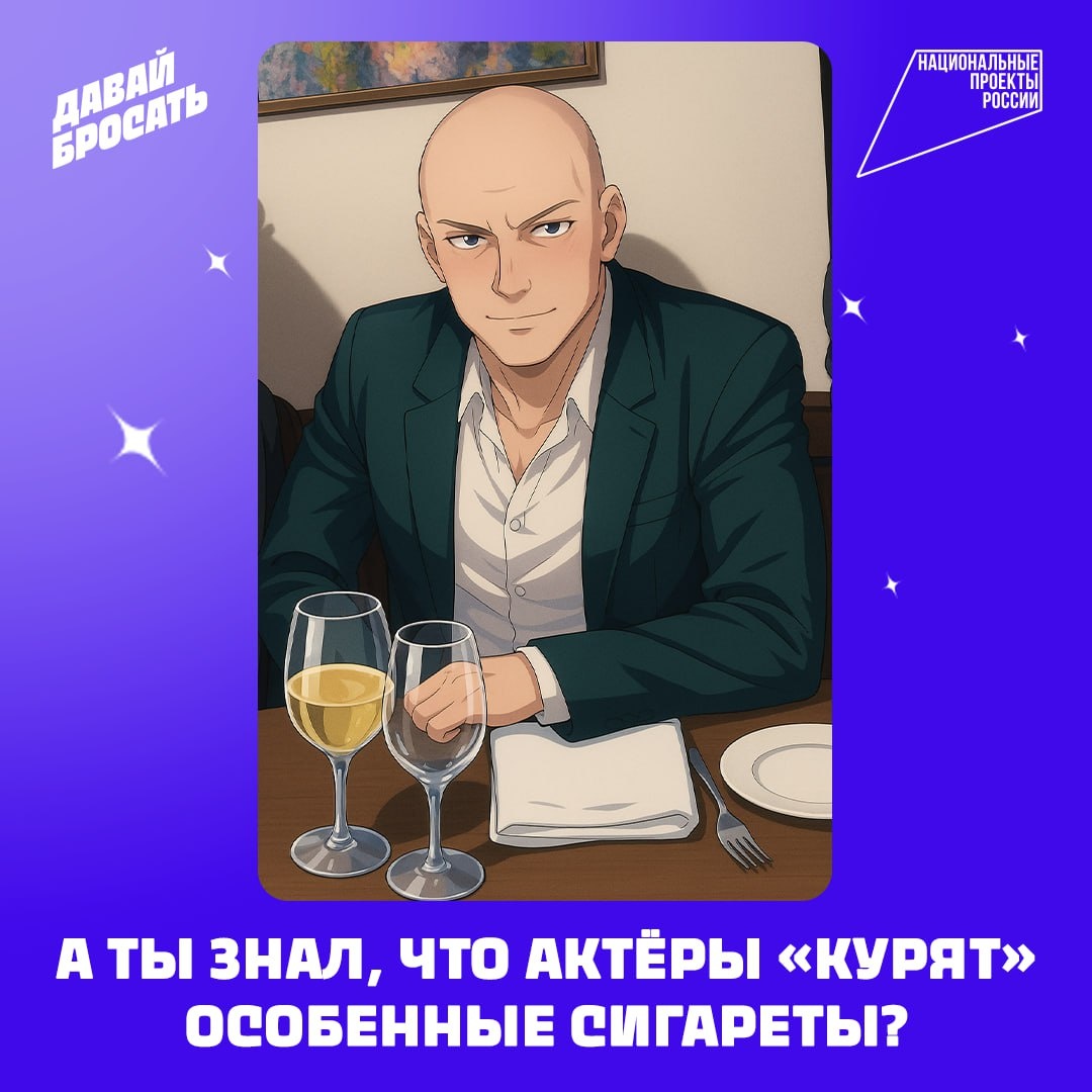 ☝️ Что? Да! Рассказываем: курение стало появляться на экранах ещё на заре кинематографа. Тогда и до сих пор оно часто используется, чтобы сказать зрителю: наш герой — ну очень «крутой» парень. Но «круто» это только с экрана. В реальности люди уже давно поняли, что даже маленькие дозы табака опасны для организма и придумали Prop — специальные сигареты для актёров. Они сделаны из травяных смесей, часто содержащих корень алтея, цветы красного клевера, лепестки роз, мёд и фруктовые соки. Вот такой парадокс: многие подсаживаются на сигареты, «вдохновившись» любимым героем. А он на самом деле и не курил 🤗 #мифология_курения