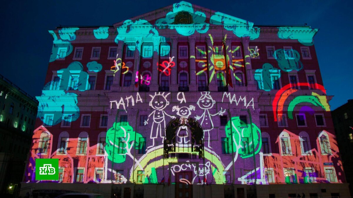 [ Смотреть видео на сайте НТВ ] На стенах столичной мэрии показали кадры времен Великой Отечественной войны в формате видеопроекции. Ко Дню Победы фасады зданий в центре столицы превратили в экраны для праздничных видеопроекций. Так, на стенах мэрии показали кадры военных лет и архивные материалы. С помощью света художники рассказали трогательную историю девочки, чей отец ушел на фронт, а мать трудилась в тылу. На здании Дома правительства оживили изображение монумента «Родина-мать зовёт!». Кроме того, праздничные видеоролики появились на домах-книжках на Новом Арбате, на стенах Московского драматического театра имени Пушкина и на фасаде Ново-Екатерининской больницы на Страстном бульваре. Увидеть кадры военных лет под песни времен Великой Отечественной войны можно было и на здании Новой Третьяковки на Крымском Валу. Помимо этого, архитектурно-художественной подсветкой украсили центральные улицы столицы. [ Смотреть видео на сайте НТВ ]
