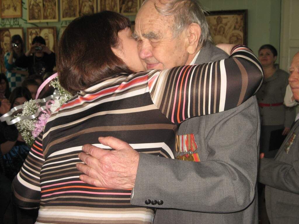 На ней изображен Долгополов Станислав Нестерович — ветеран Великой Отечественной войны, который принимал участие в штурме Рейхстага, проживал в городе Шахты до глубокой старости. А обняла его студентка Шахтинского музыкального колледжа …. Все прослезились…. В наше непростое время так важно сохранить преемственность поколений, чтобы молодежь знала нашу историю…. И помнила о жертвах Великой Отечественной войны. Фото прислала Наталья Сайбаталова. От редакции: Станислава Нестеровича Долгополова не стало в 2020-м году, через несколько месяцев после того, как он отметил свое 95-летие. Память о нем будет жить вечно в наших сердцах. Редакция неоднократно писала о героических подвигах Станислава Нестеровича. Подборку материалов читайте по ссылке: Ушел из жизни Станислав Долгополов — участник штурма рейхстага