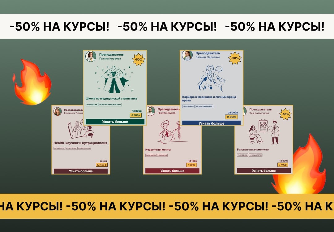 ΠΎΠ΄ΡΡΠ΅Π³ΠΎ ΠΌΠΎΠΌΠ΅Π½ΡΠ°? ΠΡΠΎΡ ΡΠ°ΠΌΡΠΉ ΠΌΠΎΠΌΠ΅Π½Ρ Π½Π°ΡΡΠ°Π»! Π’ΠΎΠΏ-ΠΊΡΡΡΡ ΡΠΎ ΡΠΊΠΈΠ΄ΠΊΠΎΠΉ βοΈ ΠΠΎ ΠΊΠ°ΡΡΠ΅ΡΠ΅ ΠΈ ΡΠΎΠ²ΡΠ΅ΠΌΠ΅Π½Π½ΡΠΌ ΠΌΠ΅Π΄ΠΈΡΠΈΠ½ΡΠΊΠΈΠΌ ΠΏΡΠΎΡΠ΅ΡΡΠΈΡΠΌ: β’ ΠΠ΅Π΄ΠΈΡΠΈΠ½ΡΠΊΠΈΠΉ ΠΊΠΎΠΏΠΈΡΠ°ΠΉΡΠ΅Ρ ΠΈ ΠΏΠΈΡΠ°ΡΠ΅Π»Ρ 24 900β½ β 12 450β½ β’ Health-ΠΊΠΎΡΡΠΈΠ½Π³ ΠΈ Π½ΡΡΡΠΈΡΠΈΠΎΠ»ΠΎΠ³ΠΈΡ 24 900β½ β 12 450β½ β’ SMM-ΡΠΏΠ΅ΡΠΈΠ°Π»ΠΈΡΡ Π² ΠΌΠ΅Π΄ΠΈΡΠΈΠ½Π΅ 24 900β½ β 12 450β½ β’ Π¨ΠΊΠΎΠ»Π° ΠΌΠ΅Π΄ΠΈΡΠΈΠ½ΡΠΊΠΎΠ³ΠΎ Π°Π½Π³Π»ΠΈΠΉΡΠΊΠΎΠ³ΠΎ (Π½Π°ΡΠ°Π»ΡΠ½ΡΠΉ/ΠΏΡΠΎΠ΄Π²ΠΈΠ½ΡΡΡΠΉ ΡΡΠΎΠ²Π½ΠΈ) 34 600β½ β 17 300β½ β’ ΠΠ°ΡΡΠ΅ΡΠ° Π² ΠΌΠ΅Π΄ΠΈΡΠΈΠ½Π΅ ΠΈ Π»ΠΈΡΠ½ΡΠΉ Π±ΡΠ΅Π½Π΄ Π²ΡΠ°ΡΠ° 9 900β½ β 4 950β½ β’ ΠΠ°ΡΡΠ΅ΡΠ½ΡΠ΅ ΡΡΠ΅ΠΊΠΈ Π² ΠΌΠ΅Π΄ΠΈΡΠΈΠ½Π΅ 5 900β½ β 2 950β½ β’ ΠΡΡΠ΅ΠΊΡΠΈΠ²Π½ΠΎΠ΅ ΠΎΠ±ΡΠ΅Π½ΠΈΠ΅ Ρ ΠΏΠ°ΡΠΈΠ΅Π½ΡΠΎΠΌ 9 900β½ β 4 950β½ ΠΠΎ Π½Π°ΡΠΊΠ΅, ΡΡΠ°ΡΠΈΡΡΠΈΠΊΠ΅ ΠΈ Π°ΠΊΠ°Π΄Π΅ΠΌΠΈΡΠ΅ΡΠΊΠΎΠΌΡ ΠΏΠΈΡΡΠΌΡ: β’ Π‘Π°ΠΌ ΡΠ΅Π±Π΅ ΡΡΠ°ΡΠΈΡΡΠΈΠΊ 4 800β½ β 2 400β½ β’ ΠΠΊΠ°Π΄Π΅ΠΌΠΈΡΠ΅ΡΠΊΠΎΠ΅ ΠΏΠΈΡΡΠΌΠΎ 9 900β½ β 4 950β½ β’ ΠΠΈΡΡΠ΅ΡΡΠ°ΡΠΈΡ: ΠΊΠ°ΠΊ Π½Π°ΡΠ°ΡΡ ΠΈ Π΄ΠΎΠΉΡΠΈ Π΄ΠΎ ΠΊΠΎΠ½ΡΠ° 6 500β½ β 3 250β½ β’ Π¨ΠΊΠΎΠ»Π° Π΄ΠΎΠΊΠ°Π·Π°ΡΠ΅Π»ΡΠ½ΠΎΠΉ ΠΌΠ΅Π΄ΠΈΡΠΈΠ½Ρ 14 900β½ β 7 450β½ β’ Π¨ΠΊΠΎΠ»Π° ΠΏΠΎ ΠΌΠ΅Π΄ΠΈΡΠΈΠ½ΡΠΊΠΎΠΉ ΡΡΠ°ΡΠΈΡΡΠΈΠΊΠ΅ 15 100β½ β 7 550β½ Π‘ΠΏΠ΅ΡΠΈΠ°Π»ΡΠ½ΠΎΡΡΠΈ ΠΈ ΡΡΠ½Π΄Π°ΠΌΠ΅Π½ΡΠ°Π»ΡΠ½ΡΠ΅ Π·Π½Π°Π½ΠΈΡ: β’ ΠΠ΅Π²ΡΠΎΠ»ΠΎΠ³ΠΈΡ ΠΌΠ΅