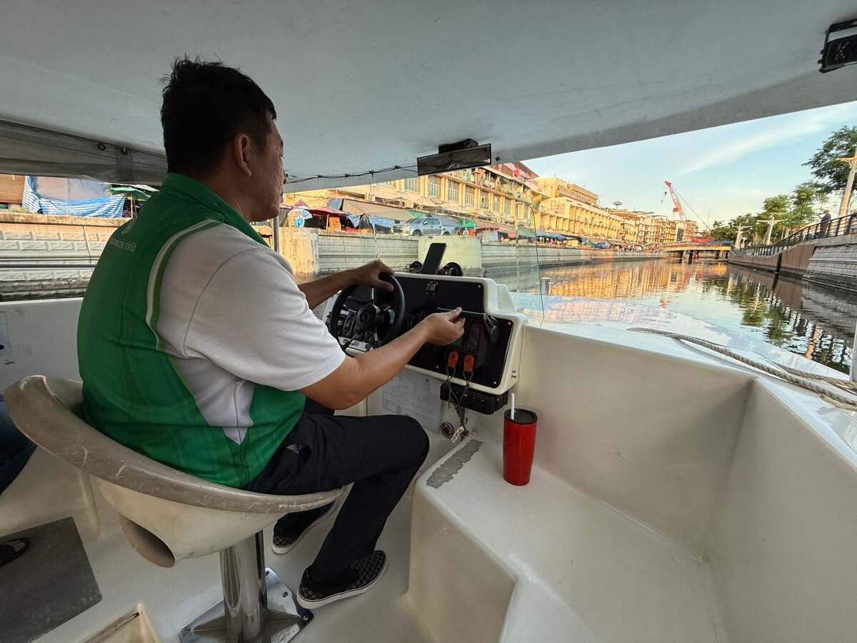 По центру Бангкока, тайской столицы, можно покататься на экологически чистых и бесшумных катерах, которые возят по здешним каналам. Есть и старые лодки с мотором, шумные, но по ряду маршрутов ходят и новые, с солнечными панелями на крыше, и, к тому же, бесплатные. Один такой интересный маршрут - от главного ж/д вокзала к рынку Thewarat. Так как погода тут очень тяжелая для длительных прогулок - +35-36 (а по ощущениям, как пишут прогнозы, +42), то хочется поменьше проходить ногами, и больше сидеть и ехать на чем-то. Вот для этой цели как раз лодки - отличное решение, от воды веет прохладой, сидишь и наслаждаешься видами города, красивыми мостами. Для многих европейских городов такие лодки по каналам - привычное явление, а вот увидеть подобное в далеком Таиланде - особо интересно.