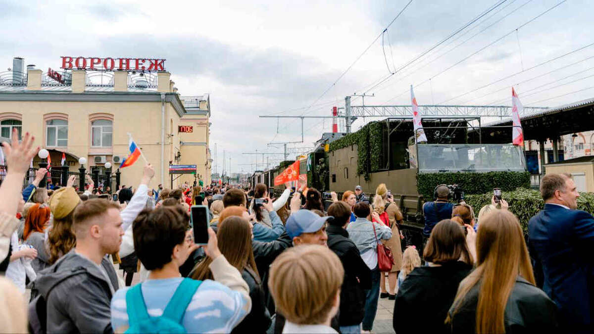 В Воронеже в честь Дня Победы была организована остановка тематического поезда «Волга», принадлежащего Министерству обороны РФ. Этот проект, реализованный совместно Юго-Восточной железной дорогой и Министерством обороны, приурочен к 80-й годовщине Победы в Великой Отечественной войне. Как сообщили в пресс-службе ЮВЖД, «Волга» представляет собой современный военный состав, обеспечивающий безопасность военных и гражданских поездов в зоне СВО. Для посетителей была подготовлена трёхчасовая программа, включающая ознакомление с выставками, посвящёнными специальной военной операции, а также рассказ о роли железнодорожников в достижении Победы в Великой Отечественной войне. В составе поезда были представлены три вагона с экспозицией вооружения и трофеев, а также масштабная выставка беспилотных летательных аппаратов. Экскурсии проводили действующие военнослужащие. Уникальный состав вызвал огромный интерес у жителей города, которые приходили на вокзал целыми семьями, чтобы своими глазами увидеть