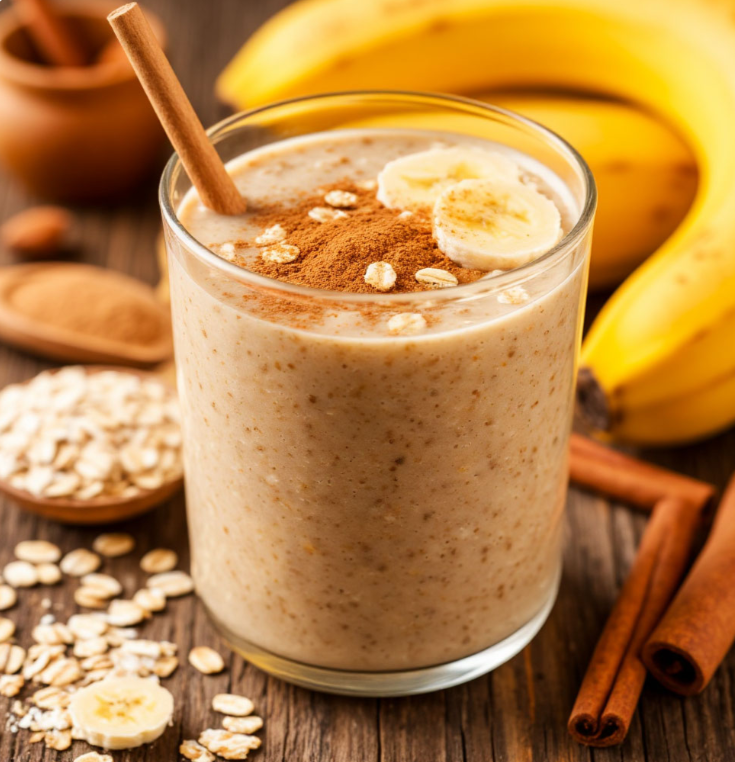 Приготовим сытный и полезный смузи с овсянкой и бананом – идеальный вариант для завтрака или перекуса! Для начала подготовим ингредиенты: очищаем 2 банана (примерно 400 г) и нарезаем их кусочками. В чашу блендера выкладываем нарезанные бананы. Добавляем 8 столовых ложек овсяных хлопьев. Вливаем 400 мл молока (можно использовать коровье, миндальное или любое другое по вашему вкусу). Если вы любите корицу, добавляем 0,5 чайной ложки. Взбиваем все ингредиенты в блендере до однородной консистенции. Если смузи получился слишком густым, можно добавить еще немного молока. Попробуйте смузи на вкус. Если смузи недостаточно сладкий, добавьте мед по необходимости. Взбиваем смузи еще раз, чтобы мед равномерно распределился. Переливаем смузи в стакан. По желанию можно украсить смузи дольками банана, корицей или овсяными хлопьями. Смузи с овсянкой и бананом готов! Подаем смузи сразу после приготовления, чтобы он сохранил свою свежесть и полезные свойства. Этот смузи отлично подойдет для тех, кто хоч