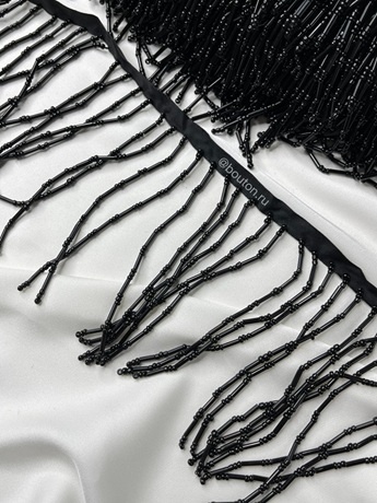 - Бисерная – это нитяная основа, украшенная бисером, стеклярусом или пайетками. Создает эффект мерцания и движения, идеальна для праздничной одежды и декоративных элементов.