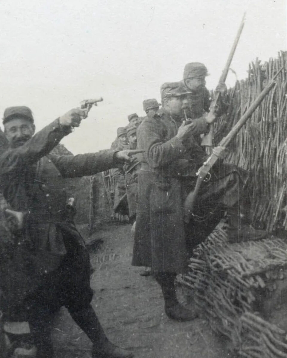 Французские солдаты в траншее 1915 год.