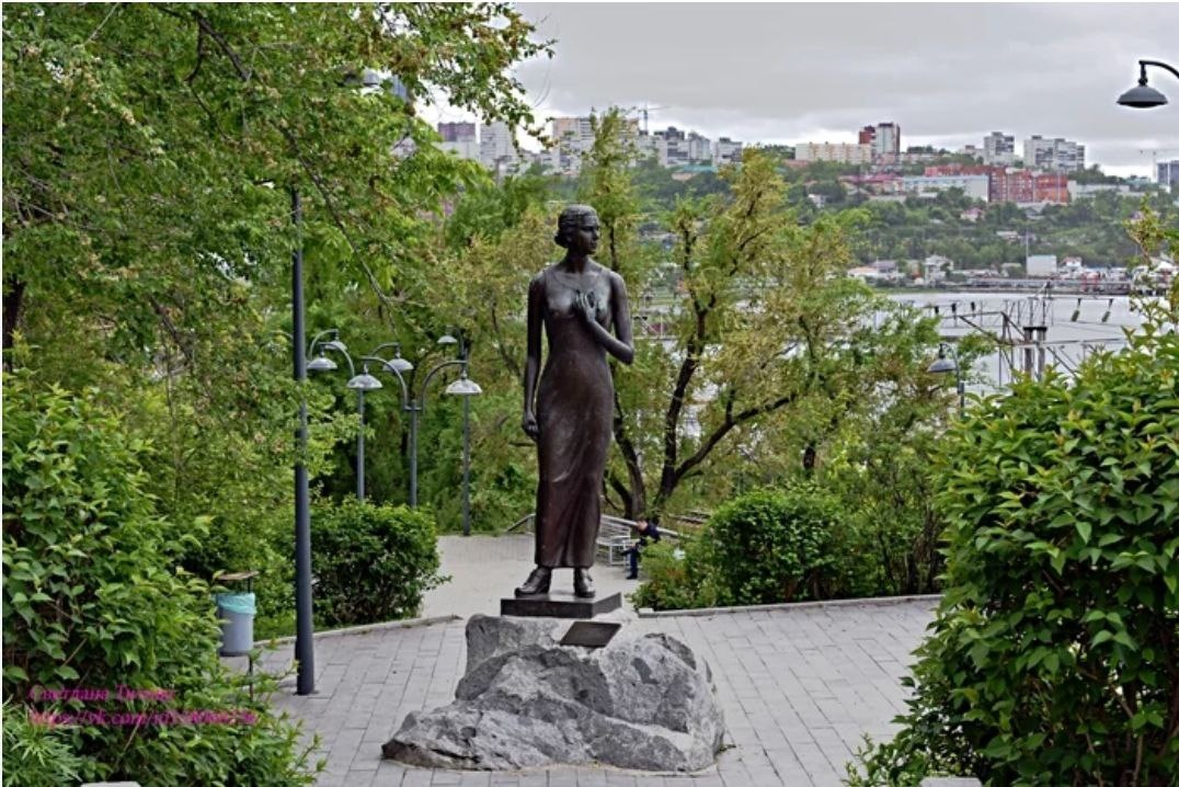 Недавно узнала про историю песни "Катюша" и решила приберечь её для этих дней. И хотя во Владивостоке были, но этот памятник упустили. Тем более обидно, что специально к озеру Хасан ездили, у границы с Китаем и Кореей стояли...Но давайте по порядку. Екатерина Филиппова (Алексеева) родилась во Владивостоке, училась в Ленинградской консерватории, потом познакомилась с будущим мужем - офицером-пограничником - и они вернулись в Приморье. Во время легендарных событий на озере Хасан она находилась там, ухаживала за ранеными. За самоотверженный труд была награждена орденом Красной Звезды. В одном источнике я читала, что она "подняла женщин на защиту гарнизона". Ну вот нигде больше такого не нашла...а вот про работу в госпитале пишут все. И даже фото архивное Екатерины Алексеевой нашла. А вот дальше приморские краеведы утверждают, что после победы в Приморье для встречи с участниками событий приехали Матвей Блантер и Михаил Исаковский, авторы песни. Там они столкнулись с Екатериной Филиппово