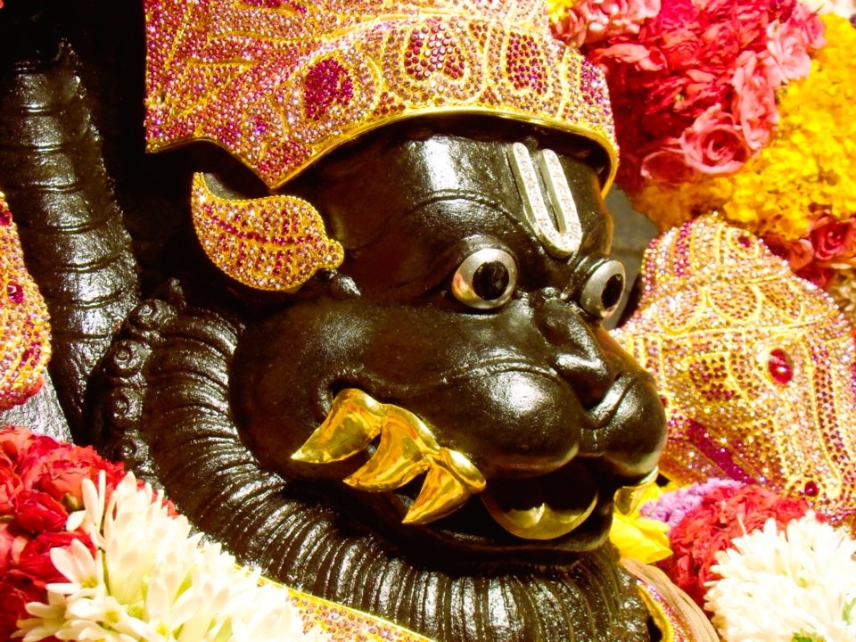 С благоговением склоняюсь перед Господом Нрисимхадевой, чья божественная мудрость звучит в сердце каждого искреннего преданного, как тихий наставнический голос. Подобно тому, как лунный свет мягко рассеивает ночную тьму, Его милость растворяет все препятствия на духовном пути, очищая сознание от шести врагов души: вожделения, гнева, жадности, иллюзии, гордыни и зависти. О Всесильный Владыка! Твои острые когти, подобные вспышкам молний, способны разорвать не только материальные оковы, но и самые крепкие путы наших ложных желаний. Явись в глубинах моего сердца и разгони тьму неведения, чтобы в Твоей защите я смог обрести подлинную свободу от страхов этого мира. День явления Нрисимхадева - это космический символ торжества Истины над ложью. Воплотившись в удивительной форме человекольва ("Нара-Симха"), Господь показал, что Его защита превосходит все материальные законы. История этого явления - не просто древнее предание, а вечный урок о природе Божественного заступничества. Демон Хираньяка