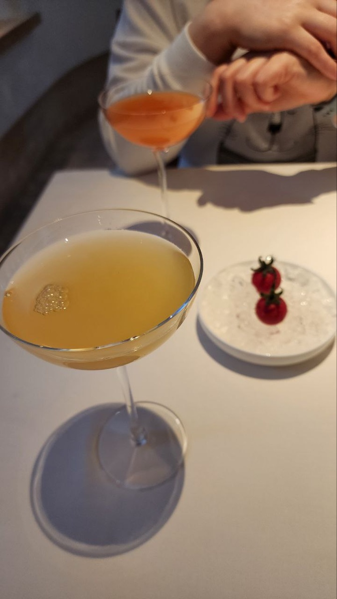 Буквально на днях добрались до заведения Betulla, в моем сознании он остался как "Birch для бедных", что ни в коем случае не говорит о качестве заведения. Просто туда значительно проще попасть и сет-меню будет немного подешевле, чем в Бирче. Само заведение создано тем же Арсланом Бердиевым, следовательно качество блюд и сервиса будет столь же высоко, разве что с уклоном в итальянщину. Тут у нас тоже сет меню. На кухне, кстати, руководил непосредственно создатель Арслан Бердиев. Все начинается с аперитива. Это авторские коктейли аклогольный на основе аппероля, безалкогольный на основе сока манго и "конфетки" ручной работы с гаспачо с клубникой и томатами внутри. Коктейли достаточно ядреные и кприторно-кислые, что логично, ибо их цель разжечь аппетит, а вот гаспачо просто великолепен. Я раньше почему не любил гаспачо? Это потому, что у меня нормального не было! Амисбуши. Кто не в курсе - это такие маленькие закусойды, которые съедаются одним укусом. В яйце - карбонара. Вкусно. Прям очень