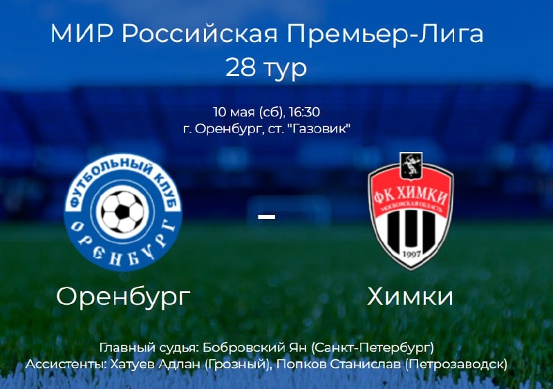 Сегодня, 10 мая, в 28-м туре РПЛ «Оренбург» встретится с «Химками» на своём поле в Ростошах. Матч на стадионе «Газовик» стартует в 16:30 по местному времени.