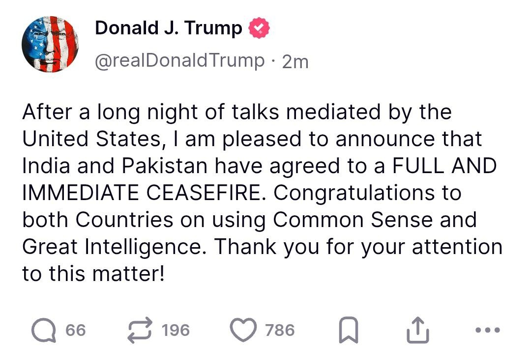 ❗️Trump claims India and Pakistan agree to FULL AND IMMEDIATE CEASEFIRE