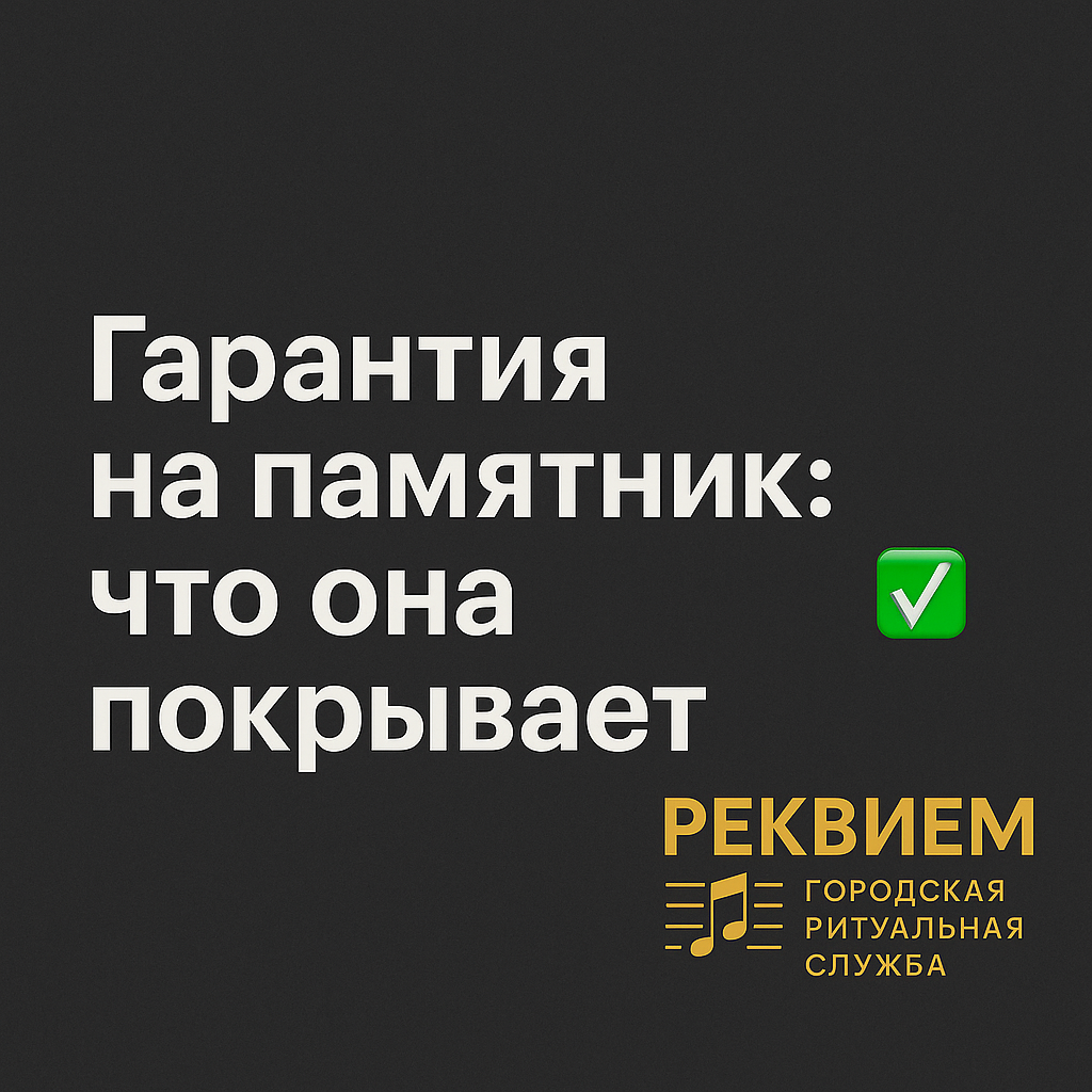 При заказе памятника важно не только выбрать красивую форму и качественный материал, но и понимать, какие гарантии предоставляет исполнитель. Это поможет избежать неприятных сюрпризов спустя сезон или два. Ниже разбираем, что входит в гарантию на памятник и как себя обезопасить. Поставщик обязан гарантировать, что использованный камень — натуральный, без скрытых трещин, дефектов и сколов. Что входит: Срок: от 5 до 25 лет в зависимости от материала (гранит — самый надёжный) Важно, чтобы монтаж был выполнен по технологии: с армированным фундаментом, металлическими штырями между тумбой и стелой. Что входит: Срок: обычно от 1 года до 5 лет Качество изображения и надписей зависит от оборудования и мастерства. Что входит: Срок: в среднем 1–3 года Перед заказом памятника важно: Только комплексный подход даст уверенность в результате и поможет избежать скрытых проблем. 📌 Заказывая памятник в ГРС «Реквием», вы получаете письменную гарантию на все этапы: 🔗 Наш сайт