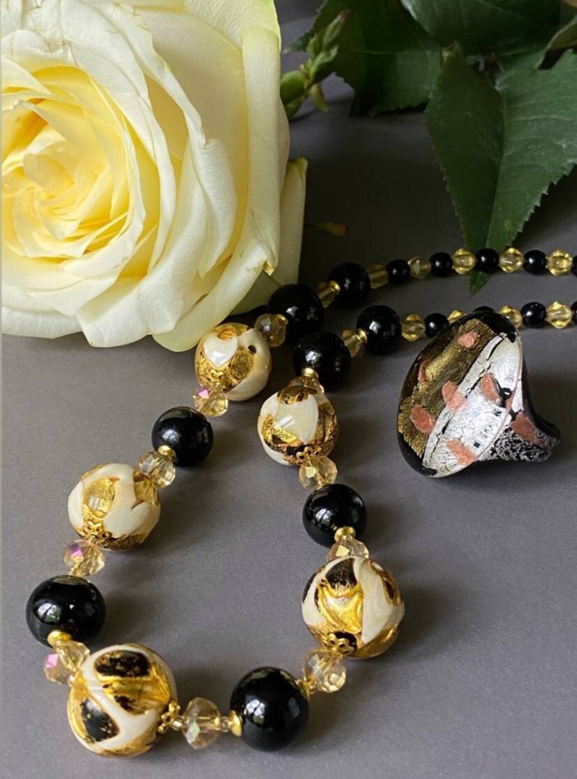 Эти великолепные бусы, созданные вручную из муранского стекла, являются настоящим произведением искусства. Каждая бусина — это уникальный элемент, который сочетает в себе яркость цвета, текстуру и искусство стеклодувного мастерства. Неповторимые узоры и игры света, создаваемые на поверхности бусин, делают каждое изделие уникальным и привлекательным🤍 Бусы Barocco из муранского стекла Размер:50 см+5 см удлиняющая цепочка 10500₽ Кольцо Paolo из муранского стекла На фото 17 размер 6500₽ #оригинальноемуранскоестекло🇮🇹