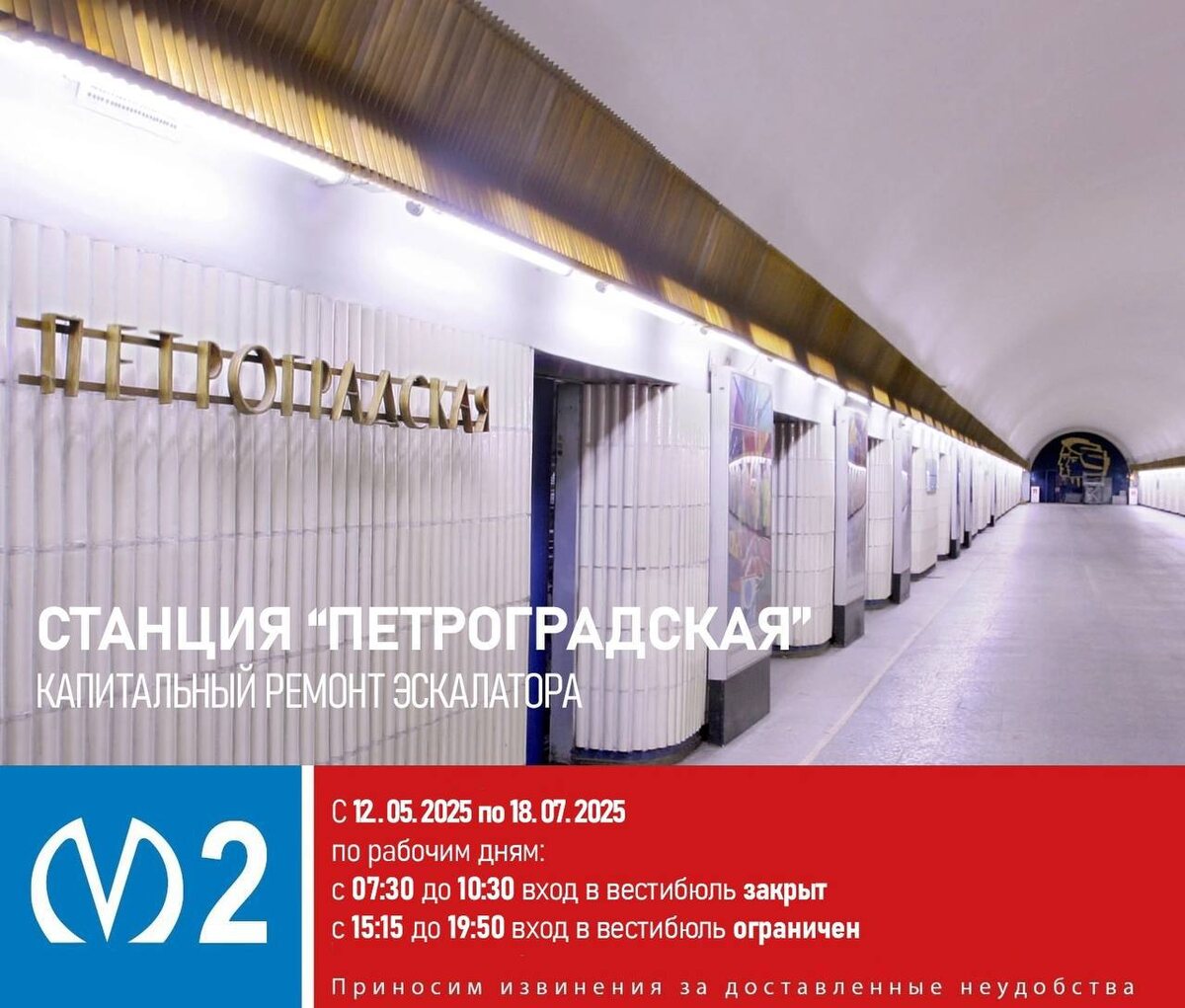❗️ Вход в вестибюль «Петроградской» будут закрывать по утрам до июля Вестибюль станции метро «Петроградская» будет временно закрываться на вход с 12 мая по 18 июля по рабочим дням. Так, с 07:30 до 10:30 вход в вестибюль будет закрыт. А с 15:15 до 19:50 вход будет ограничен. От «Петроградской» можно доехать наземным транспортом до ближайших станций метро. 📎 До «Горьковской» движение осуществляют автобусы №46 и 76, до «Черной речки» будут осуществлять движение автобусы №1, 46, 76, 227 или троллейбус №34. До станции «Спортивная» движение будут осуществлять автобусы №10, 128, 230 и 275 или троллейбус №31. До «Чкаловской» двигаются автобусы №25, 185. До станции «Лесная» можно добраться на автобусах №185, 249, 275 или троллейбусе №31. Фото: Метро Петербурга Петербургский дневник