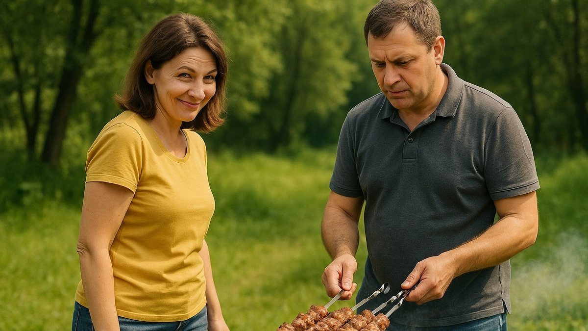 — Дорогой! — выпорхнула она из кухни с полотенцем в руках, — а давай на шашлыки завтра? С твоими друзьями! Я уже и маринад приготовила.