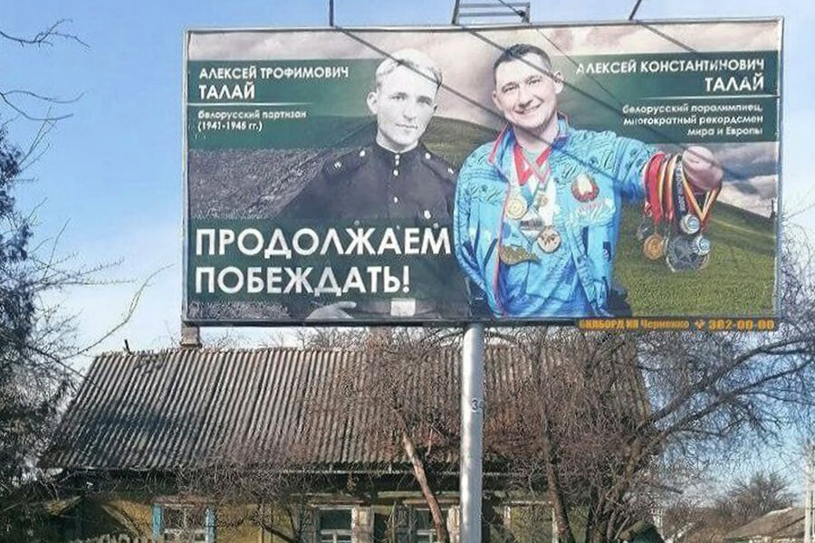 Руководитель благотворительного фонда, паралимпиец Алексей Талай и его дед, ветеран войны Алексей Трофимович Талай, встречают прохожих с городских билбордов. Два Алексея из разных поколений, породненных не только кровью, но и Великой Отечественной войной. Осколок снаряда упал рядом с партизаном Алексеем Талаем во время тяжелых боев под Оршей, чудом не задев его. Но другой снаряд, десятилетия дремавший в земле, настиг его внука, тяжело ранив накануне очередного Дня Победы. Завет Алексея-старшего, машиниста паровоза, помнить о солдатиках, погибших, чтобы жили в мире другие, для Алексея-младшего, который после минно-взрывной травмы простился с мечтой водить поезда, стал одним из главных жизненных смыслов. Сохранять память о героях и помогать тем, кто страдает от новых фашистских снарядов — одна из главных задач его фонда. Накануне 9 мая Алексей рассказал нам военную историю своей семьи и поделился мыслями о проектах, посвященных 80-летию Победы.