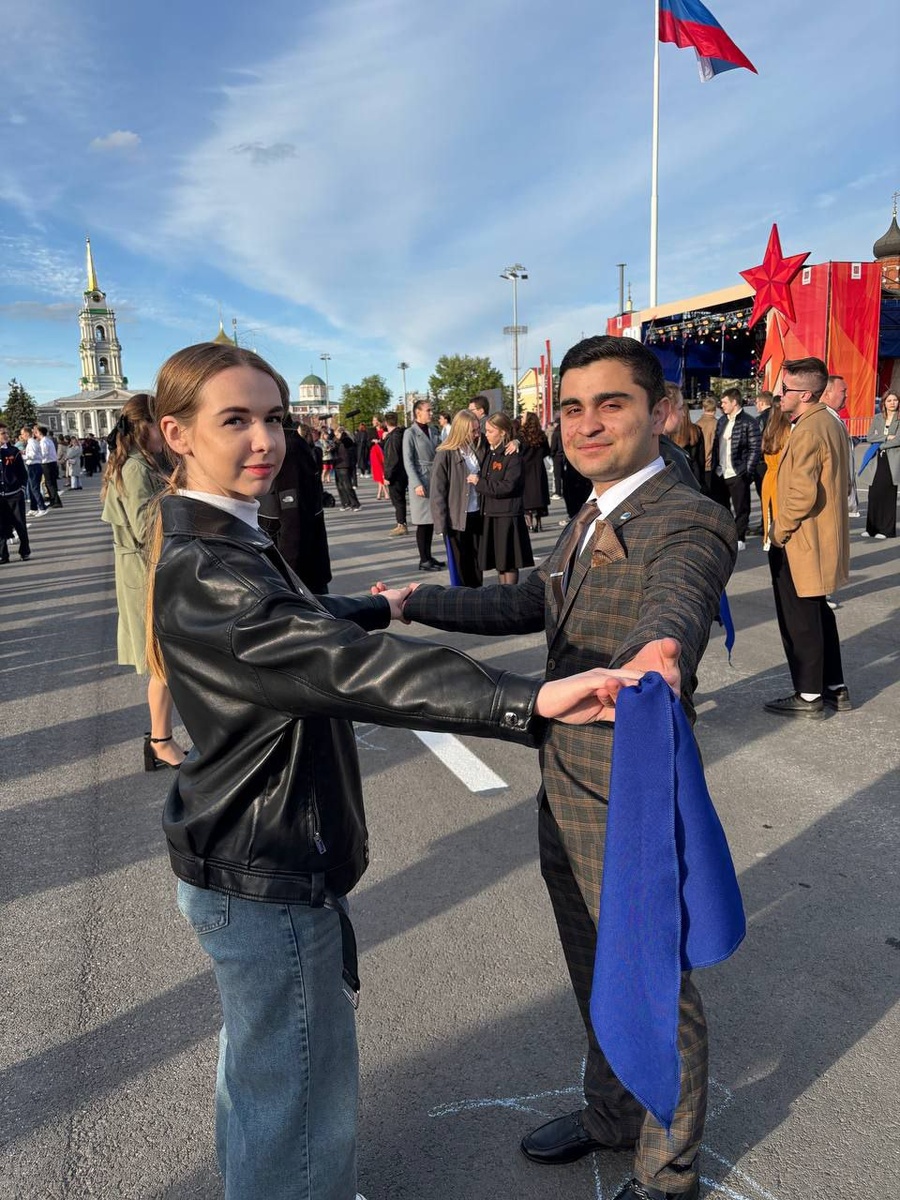 Наши студенты присоединились к акции «Синий платочек» ❤️ Акция проходит с 2016 года. В день 80-летия Великой Победы на площади Ленина вальс под легендарную песню в исполнении Клавдии Шульженко объединил более 500 пар 🤩 #УниверситетЛьваТолстого #Победа80