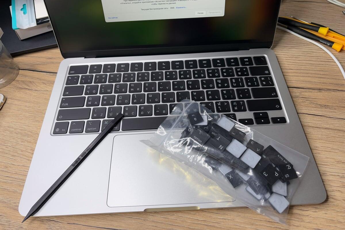 После ухода Apple из России, продукция яблочной компании никуда не пропала и даже не стала менее доступной, правда теперь поставляется исключительно по параллельному импорту и больше нет официальных сервисных центров. Вот последнее конечно печально. Что касается смартфонов и планшетов, отсутствие официальных поставок для России по сути ничего не поменяло. Так, сейчас у меня iPhone для японского рынка и он в точности такой же, каким был бы у нас. Однако с ноутбуками уже есть нюанс, в виду отсутствия русскоязычной раскладки клавиатуры. Впрочем и это легко лечится, причем без дурацкой гравировки. Клавиши для MacBook (оригинальная русская раскладка) https://alii.pub/729dkd?erid=2SDnjefRSQB Лично мне никогда не нравились маленькие русские буковки, притулившиеся с краю клавиш. Выглядит не к месту и крайне ущербно, да и не на всякой клавиатуре возможна гравировка. Чтобы понять о чем я сейчас говорю, просто взгляните на клавиатуру моего новенькой MacBook Air из Тайланда. Кстати, на данный мом