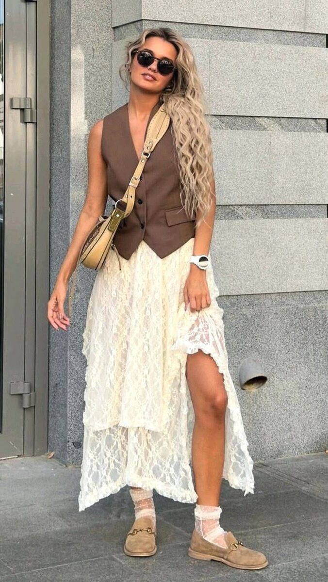 Саша стояла перед зеркалом, слегка кружась, и наблюдала, как воздушная кружевная юбка мягко колышется вокруг её ног. Она улыбнулась. "Ну вот, а я говорила, что юбки — это не моё", — подумала она. Любимый коричневый жилет, джинсы, грубые ботинки — это был её привычный, удобный мир. Но сегодня всё изменилось. Вместо джинсов — лёгкая, почти невесомая юбка, а вместо кроссовок — уютные замшевые лоферы. И эти кружевные носочки... Мама подарила их давно, с надеждой в глазах: "Ну вдруг когда-нибудь наденешь?" И вот этот "когда-нибудь" настал. Саша сделала ещё один поворот перед зеркалом, и юбка снова взметнулась, как крылья. В голове снова заиграла песенка: "Сбежала принцесса, сбежала из дворца..." — Принцесса? — фыркнула она сама на себя. — Ну уж нет, я не про хрустальные туфельки и томные взгляды. Но в отражении стояла вовсе не хрупкая сказочная героиня, а она сама — сильная, уверенная, но вдруг... чуть более нежная. И это было круто. — Принцессы бывают разными, — решила Саша. Она взяла тел