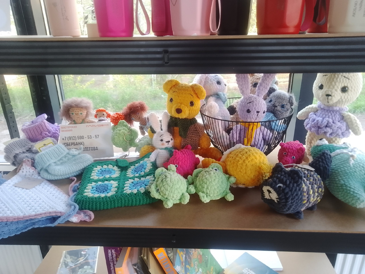 Сегодня наконец-то удалось съездить пополнить наличие на полочке в ОКЦ "Горизонт". Второй месяц пошёл моей аренды там. Пока мне нравится. Нравятся неожиданные приятные переводы от незнакомых мне людей 😊 Да и Аркадий Викторович П. просто молодец, шестой (или седьмой?) раз у меня покупает! 👍 Мужу говорю: "Надо срочно отвезти новые игрушки на полочку! А то придёт Аркадий Викторович, а ничего нового нет ...Расстроится ..." Сложновато бывает связаться с девушкой Аллой (через неё проходит моё сотрудничество), очень она занятой человек. В ВК может несколько дней не читать моё сообщение. Я стараюсь с пониманием относиться к этому. Но сегодня не выдержала. Позвонила ей. К, счастью, на второй раз она ответила, и мы договорились на этот же день. Она сделала фото моей полочки... Я плакала....😭 Все игрушки валялись как попало :( Я конечно увидела, что их стало меньше, эти конечно хорошо. Но всё перемешано, лягушки кверху попами, большая лягушка переехала на другой конец города ...ой, полочки В