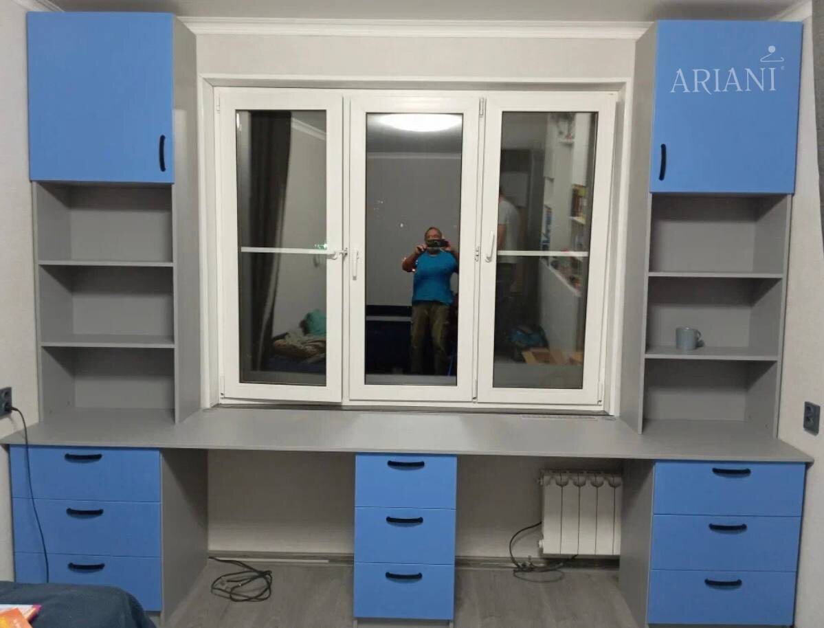 🌟Представляем новый проект от Ariani — продуманная детская комната, в которой всё создано для комфорта и развития ребёнка. ✨Зонированное рабочее пространство у окна включает три модуля с выдвижными ящиками и вместительными шкафами для хранения учебников, тетрадей и канцелярии. Просторная столешница позволяет организовать место сразу для двух детей. Второй элемент — шкаф с открытыми полками и ящиками, идеально вписанный между двумя кроватями. Он создаёт дополнительное пространство для хранения и завершает образ комнаты. Нейтральная цветовая гамма с голубыми фасадами делает интерьер современным, спокойным. Ariani — когда удобство и стиль идут рука об руку. ➖➖➖➖➖➖➖ Обратитесь к нам уже сегодня, и мы поможем воплотить вашу мечту в реальность 📱+74993224342 ✈️написать в чат менеджеру ➖➖➖➖➖➖➖ #гардеробная #мебельнаяфабрика #мебельназаказ #шкафкупе #кухняназаказ #дизайнинтерьера #кухнимосква #шкафмосква #гостиная #встроенныйшкаф #столназаказ #рабочееместо