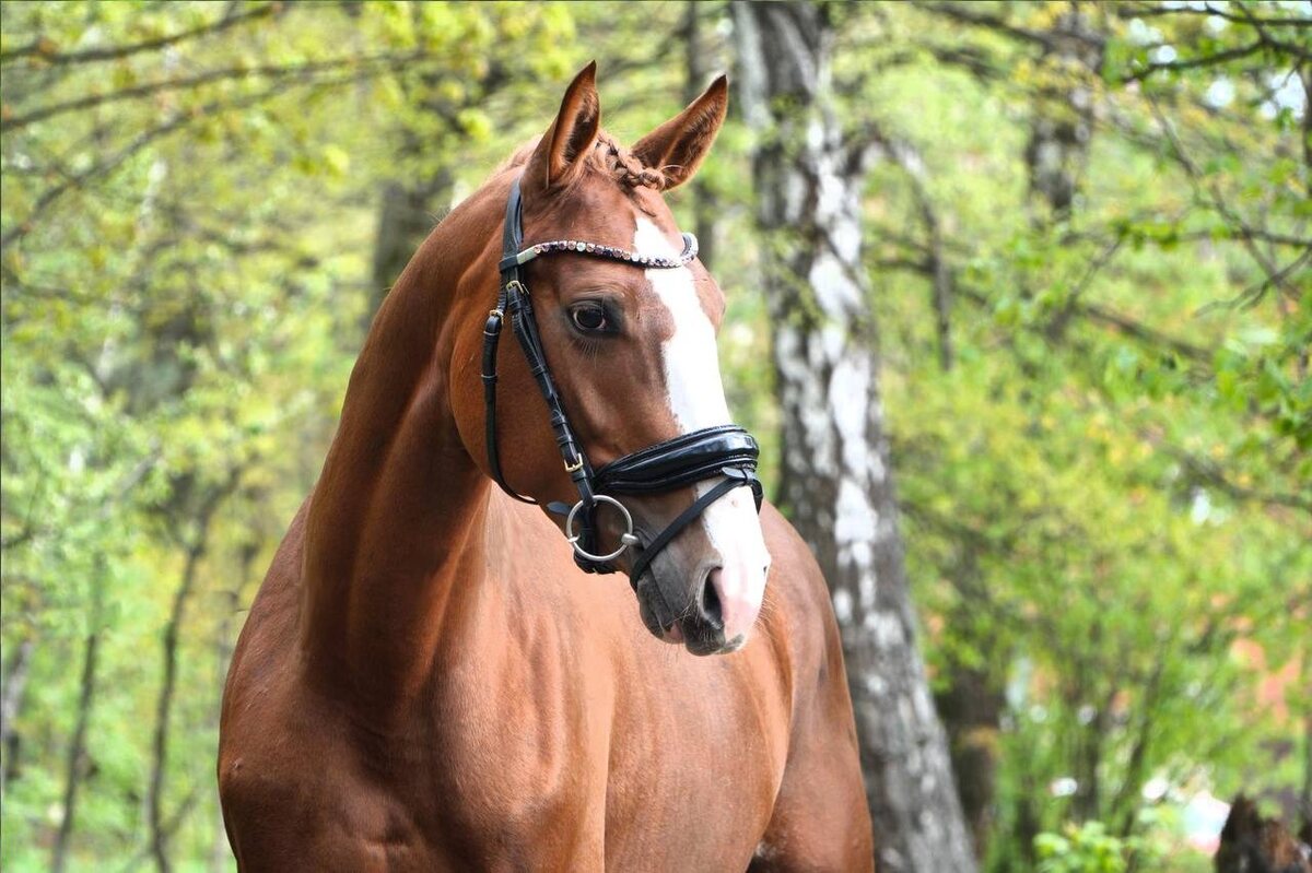 Очень красивый, прекрасно сложен, без недостатков и пороков. От природы обладает просторными и качественными аллюрами, правильным ритмом, имеет хорошие прыжковые данные. По голове полностью адекватный, не смотрящий , ласковый и добрый конь. Хорошо ведет себя в руках, стоит на развязках, положительно относится к любым бытовым манипуляциям.