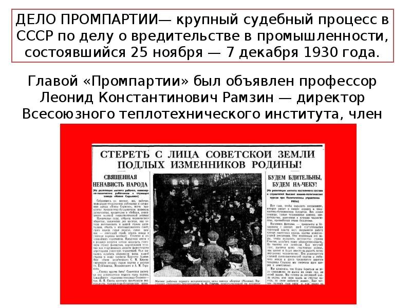 Тема: Судебные процесс 1930 г. против «Промпартии», т.е. так называемых невинных жертв тирании Сталина, как показатель, что сейчас происходит в РФ и остальной исторической России (СССР).