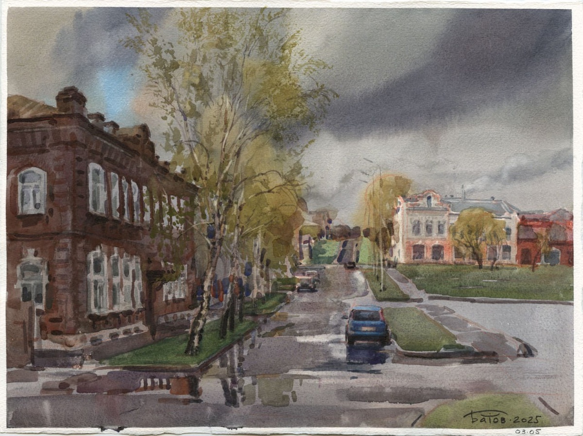 20250503 Сарапул, ул. Горького / Gorky street. Sarapul / 21x30 / plein air watercolor.