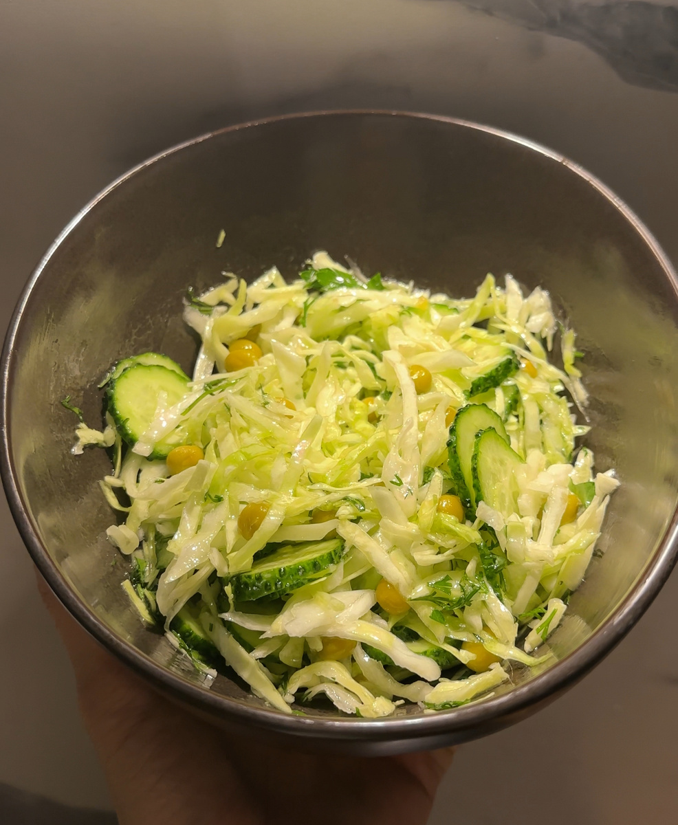 Весенние салаты: витаминный заряд для вашего организма! Дорогие, здравствуйте. без сомнения один из самых мои любимых, простых, сезонных салата 🥬🥒. Сегодня речь о капусте. Молодая капуста наконец-то появилась на прилавках! Это значит, что самое время готовить лёгкие, свежие и невероятно полезные салаты. Сегодня поделюсь с вами рецептом простого, но очень вкусного блюда, которое готовится буквально за 5 минут. Ингредиенты: Польза ингредиентов: Приготовление: Советы по приготовлению: Калорийность и пищевая ценность (на 100 г): Идеально подходит: Хранение: Салат лучше всего употреблять сразу после приготовления, так как свежие овощи теряют часть своих полезных свойств при длительном хранении. При необходимости можно хранить в холодильнике не более 12 часов. 🍽 Подавайте салат охлаждённым, украсив веточкой свежей зелени. Приятного аппетита! С заботой о вашем здоровье, ваш тренер Анастасия Зяблова ❣️. _________________ Полезные завтраки РЕЦЕПТЫ ТУТ Гарвардская тарелка питания ЧИ