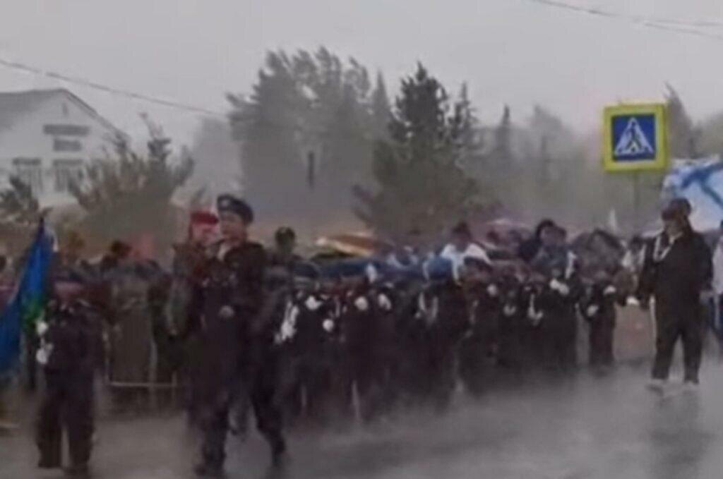 Маленькие участники парада вопреки ливню в селе Башкирии провели марш