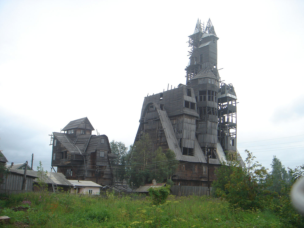 Строительство началось в 1990-х годах, в период, ознаменованный новым экономическим временем в России. Сообщается, что Сутягин начал со скромной двухэтажной дачи, но продолжал надстраивать этажи, движимый желанием строить выше, чем его соседи, и, возможно, безграничной страстью к дереву. В результате получилось хаотичное, но в то же время удивительно завораживающее сочетание архитектурных стилей, включающее элементы, напоминающие традиционные русс