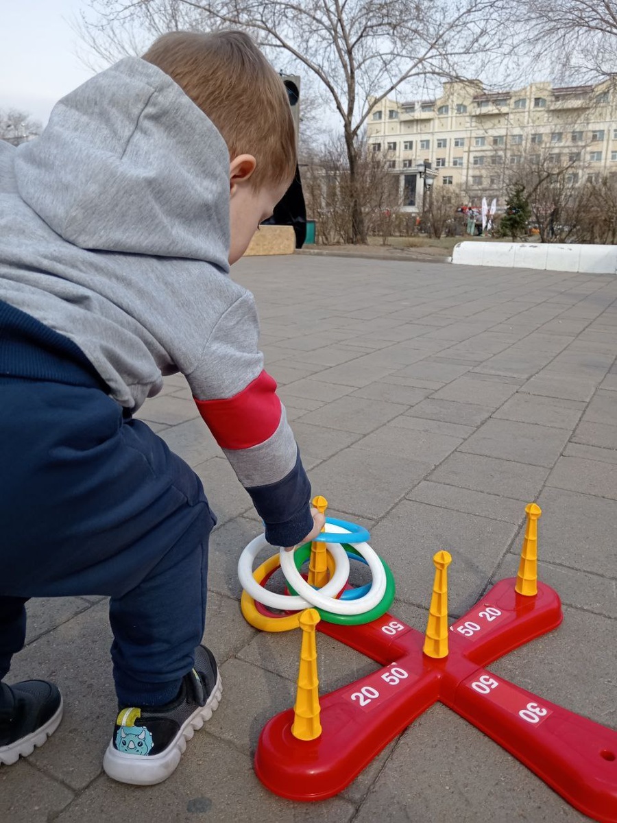 Сегодня юные зрители здорово провели время на патриотическом фестивале: ловили кольца удачи, подкидывали традиционную зоску, сыграли в