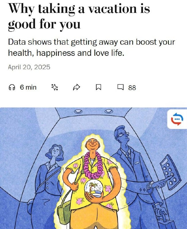 Отпуск – это инвестиция в долголетие. Исследования демонстрируют, что всего семидневный отпуск в год может увеличить продолжительность жизни на 20%. В противоположность рекламируемым добавкам и технологиям отслеживания сна, регулярный отдых оказывает значительное положительное влияние на здоровье. В рамках исследования, проведенного среди 900 мужчин с повышенным риском сердечно-сосудистых заболеваний, было установлено, что у регулярно отдыхающих вероятность развития инфарктов, диабета и инсультов снижается на 37%. Эффект достигается даже при простом снижении рабочей нагрузки. Воспользуйтесь оставшимися двумя днями, чтобы проверить эту гипотезу. Рекомендуется сделать паузу и замедлить темп жизни, желательно в сочетании с отдыхом у моря.
