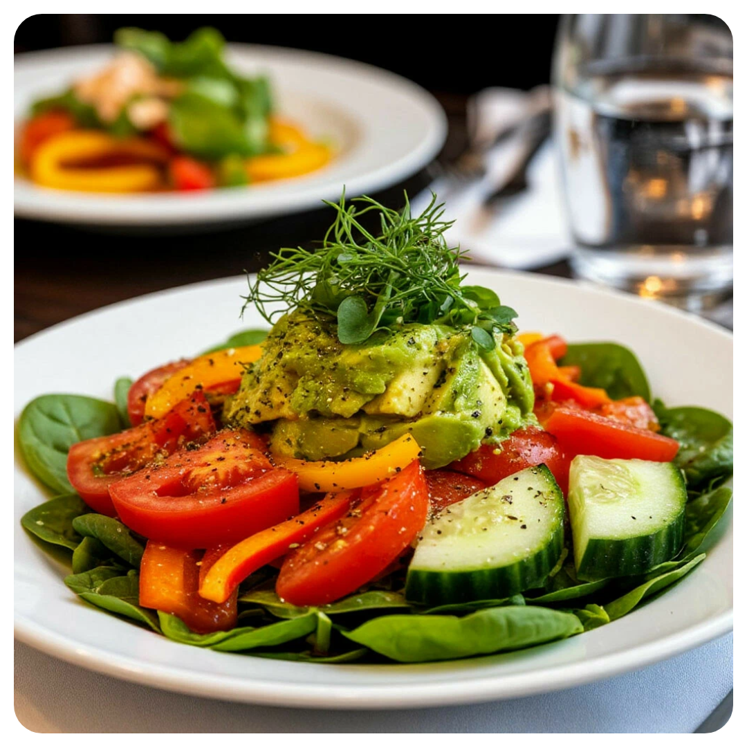 В небольшом городке, окруженном зелеными холмами и чистыми реками, жил-был шеф-повар по имени Алекс. Он был известен своей страстью к здоровой пище и умением создавать блюда, которые не только радовали глаз, но и приносили пользу организму. Каждый день в его маленьком ресторане собирались люди, стремящиеся к здоровому образу жизни. Однажды, во время утренней пробежки, Алекс заметил группу девушек, обсуждающих свои диеты и способы поддержания фигуры. Они говорили о том, как сложно найти вкусные и полезные блюда, которые бы не только насыщали, но и радовали. Это вдохновило Алекса на создание нового салата, который стал бы символом здоровья и легкости. Вернувшись в кухню, он начал экспериментировать. Первым делом он выбрал свежие ингредиенты: хрустящий шпинат, сочные помидоры черри и нежный авокадо. Затем, чтобы добавить текстуру, он добавил немного киноа — богатого белком и клетчаткой. Алекс понимал, что важно не только сочетание вкусов, но и визуальная привлекательность, поэтому он доб