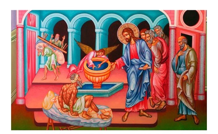 Начинается неделя , посвящённая чуду исцеления парализованного- расслабленного возле Овчей купели. Терпение и надежда- главные мотивы сегодняшнего Евангельского сюжета.Тридцать восемь лет! Это для живущих в то время, практически вся жизнь. Прибавьте состояние здоровья и отсутствие ухода. Как себя чувствовал полностью парализованный человек в такой ситуации?! И при этом он не роптал, не гневался и не хулил Бога. Продолжая веровать, он находился возле купели, ожидая Ангела, но каждый раз кто-то оказывался быстрее и проворнее попадал в воду. Но пришел Христос, увидел страдания этого человека и сжалился над ним .Получив исцеление, он взял постель и пошел, за что получил осуждение от фарисеев, так как в субботу не должно было брать постель, но видя, что и исцеление произошло в субботу, почувствовал, что ветхое осталось в прошлом, а Исцеливший принес Новый завет.Он пошел и прославил Христа.