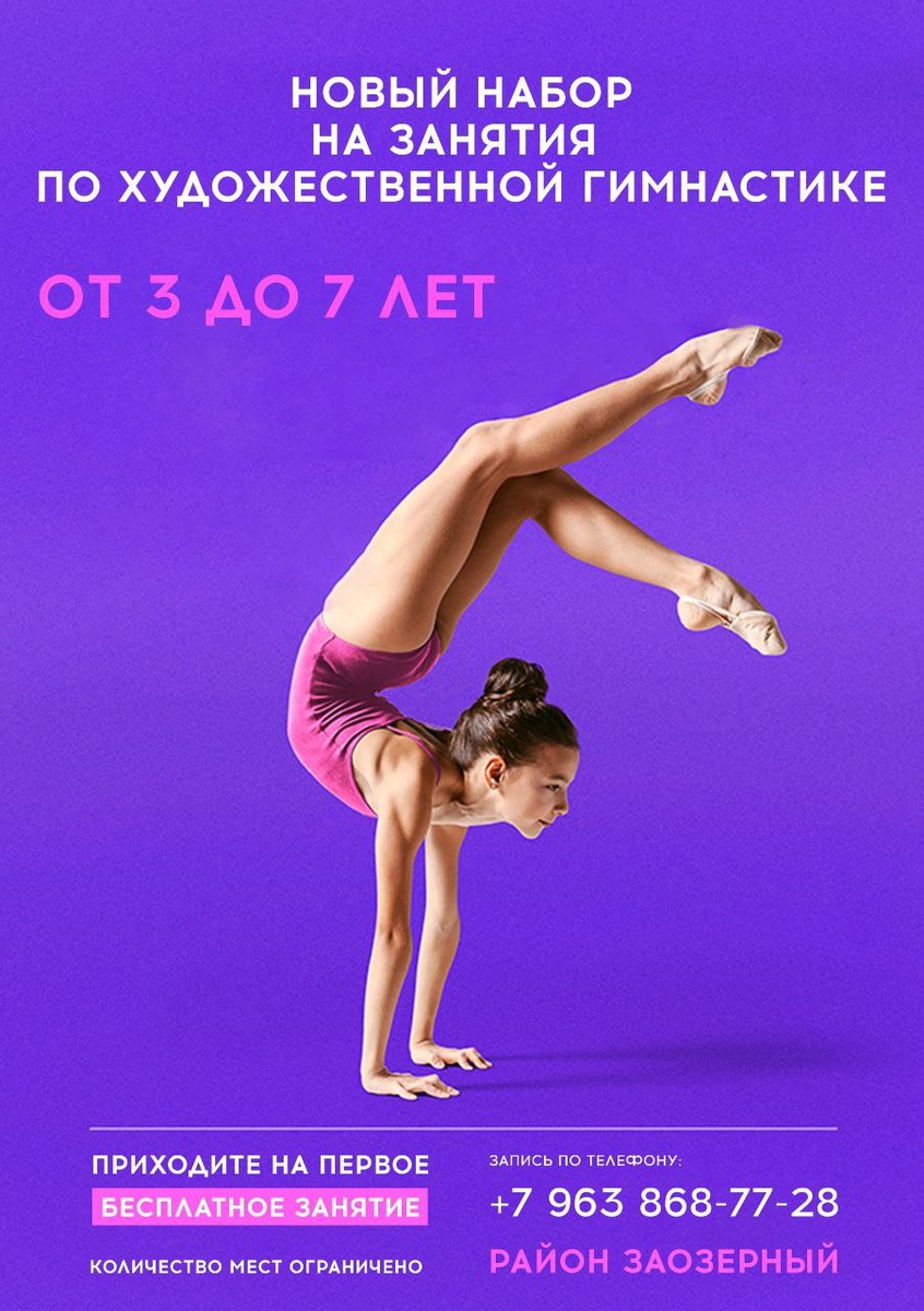 💛Клуб художественной гимнастики «Момент» ведет набор девочек от 3 до 7 лет 🟠Тренеры мастера и кандидаты в мастера спорта России подготовили победителей Всероссийских, областных и городских соревнований! 🟠Комфортные условия тренировок, новый зал, опытные тренеры, группы по возрастам! 💡Занятия проходят по адресу: 12 микрорайон, 32 (школа 52) ⬅️ 📞Телефон для записи: 8-963-868-77-28 Группа ВКонтакте ⬅️ Первое пробное занятие бесплатно! Реклама, Индивидуальный предприниматель Менщикова Елизавета Николаевна, ИНН 450125165561, erid 2Vtzqx8FHxP