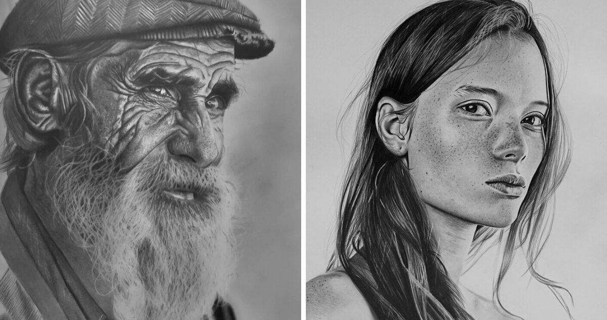Он рисует с поразительной точностью, используя то, что есть — и результат буквально сбивает с ног: портреты, полные эмоций, реалистичные морщины, задумчивые взгляды и невероятное внимание к деталям. Не зная о его диагнозе, вы бы никогда не догадались, что эти картины созданы человеком, у которого нет рук.