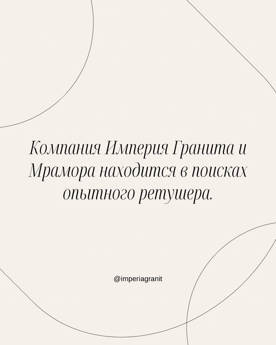 Компания Империя Гранита и Мрамора находится в поисках опытного ретушера. Ищем профессионала, который сможет грамотно обрабатывать фотографии и учитывать все технические требования. 📍Листайте карусель — внутри вся информация. Пишите в директ: @imperiagranit